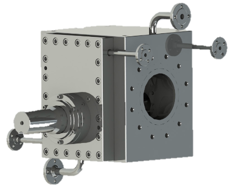 Основное применение: Транспортировка и форсирование расплава полимера Количество входов: 1 Количество выходов: 1 Диапазон производительности одного выхода: 1800 куб. см/об Скорость вращения: 10-50 об/мин Перепады давления: ≤30 МПа Рабочая температура: ≤330 °C Температура промывки: ≤450 °C