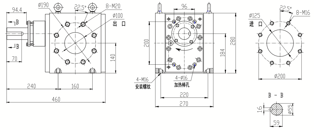 Основное применение: Транспортировка и форсирование расплава полимера Количество входов: 1 Количество выходов: 1 Диапазон производительности одного выхода: 8000 куб. см/об. Скорость вращения: 10-50 об/мин Перепады давления: ≤25 МПа Рабочая температура: ≤330 °C Температура промывки: ≤450 °C