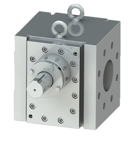 Основное применение: Транспортировка расплавов полимеров, форсирование Количество входов: 1 Количество выходов: 1 Диапазон производительности одного выхода: 1000 куб. см/об Скорость вращения: 10-60 об/мин Давление перепада: ≤25 МПа Рабочая температура: ≤330 °C Температура промывки: ≤450 °C